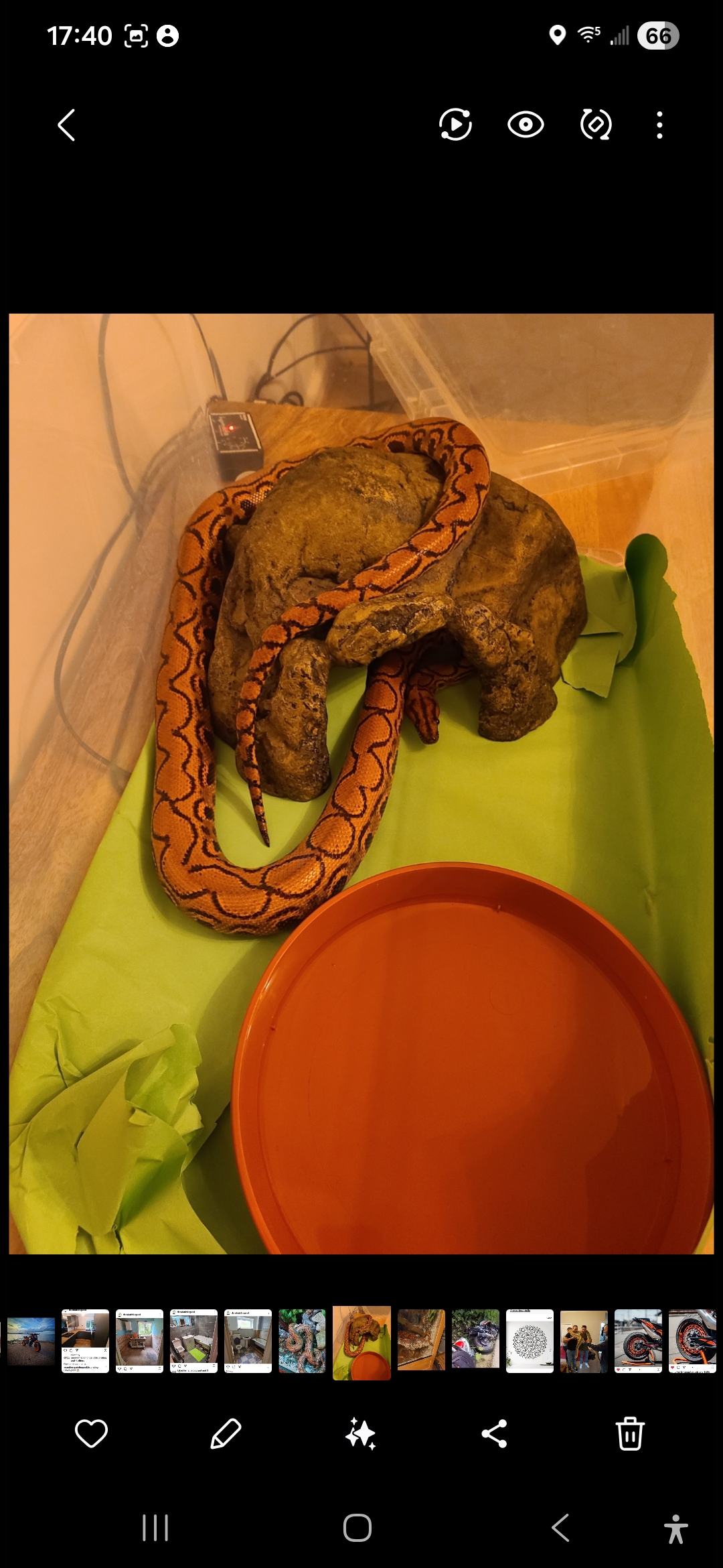 Hi, I am selling a 6yr old Female Brazilian Rainbow Boa she is roughly 5ft in length. She is a lovely vibrant orange with some really nice markings. She feeds very well and is a lovely snake. I am only selling due to change of housing arrangements. She comes with a handmade 6ft x 3ft x 2ft Vivarium which I made myself out of an oak wardrobe to a very high standard. It has 50mm building Insulation top bottom and sides and has been then been slurry tanked for waterproofing, has 2 air vents, 4 separate glass panels, led and light bulb, Terotherm digital thermostat and also a heat pad in the bottom the tank comes fully furnished.