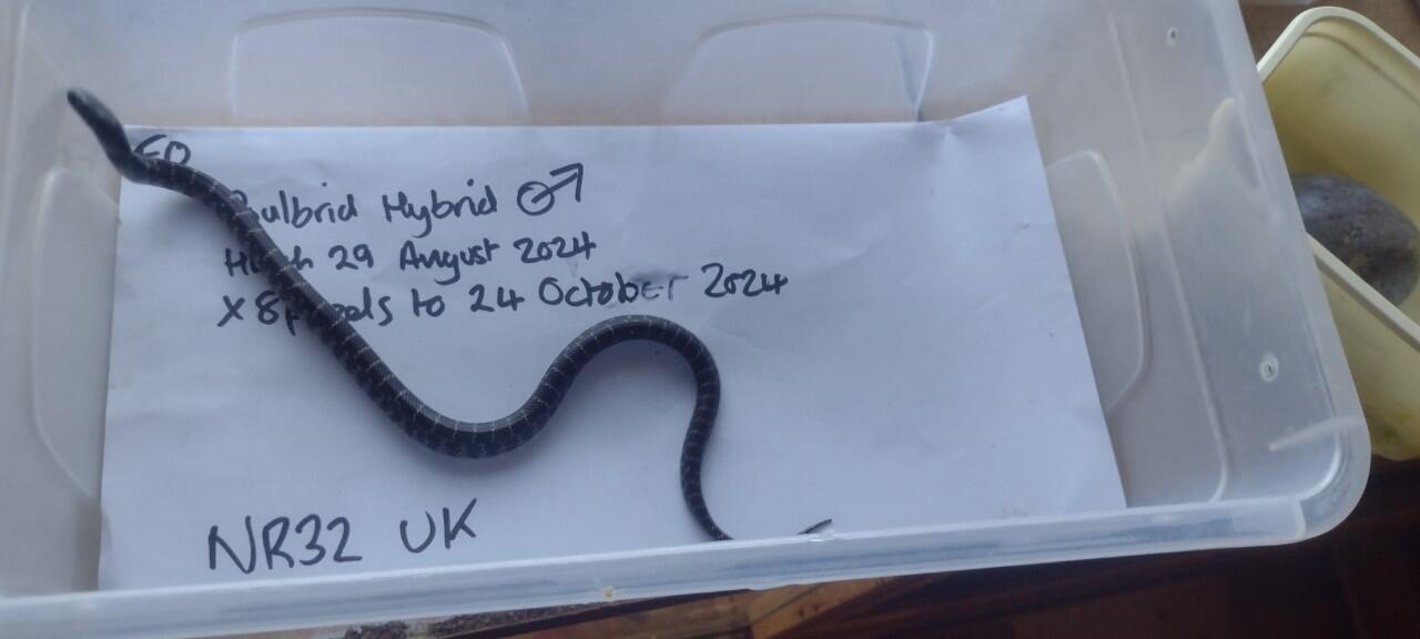 Male Calbrook King hybrid from 29 August 2024 hatch. Last weigh in at 308 gram 10 February 2026. Ready to breed and create another wacky generation of unique hybrids? Cali King Dam and Albino Florida Brooks Sire. All siblings are pretty similar with parent mix producing base wild colouring and could easily be mistaken for a normalish Cali King. £30. Pickup Suffolk NR32. Local delivery may be possible but no LTN's and ULEZ zones. If unsold will be available from my table at IHS Blackpool show 07 June 2026 and delivery may be possible on route to show from Suffolk. Payment accepted as cash, pre-collection cleared bank transfer or Paypal.