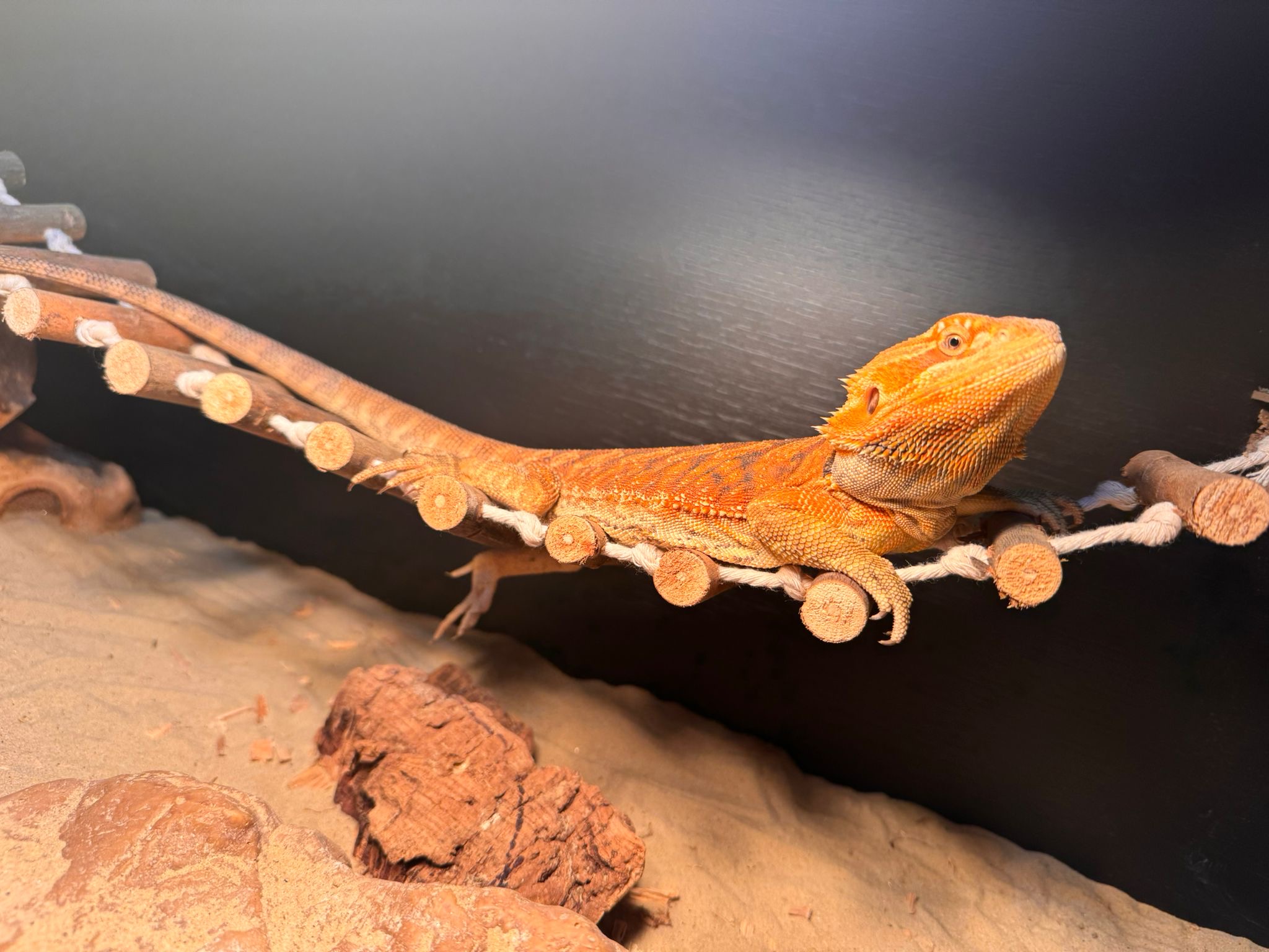 Bearded Dragon & Vivarium/Full Equipment and extras. Very sad to sell, but moving abroad to somewhere not big enough to house him. His name is Ignis; he’s happy and healthy and loves to cuddle up in the evenings, always excited to explore and enjoys baths!